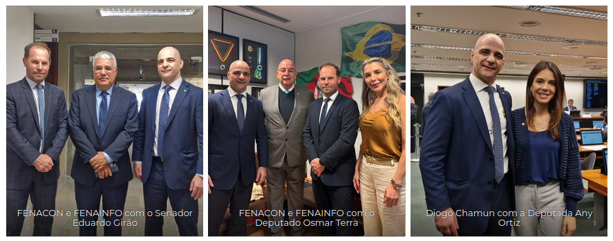 As reuniões contaram com a participação do diretor de Assuntos Legislativos da FENAINFO, Rafael Sebben, e da equipe de consultoria legislativa e de relações governamentais da AGF Advice, representada pela advogada Ana Paula Gaiesky.