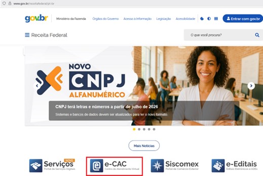 Passo 1. Acessar o portal e-CAC no site da Receita Federal do BrasilFig